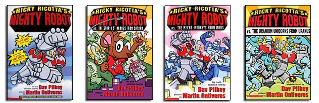 Ricky Ricotta Mighty Robot early chapter books: Some of the books in this popular series are written at DRA Level L / Guided Reading Level 20, including: Ricky Ricotta's Mighty Robot, Ricky Ricotta's Mighty Robot vs. the Mecha-Monkeys from Mars, Ricky Ricotta's Mighty Robot vs. the Stupid Stinkbugs from Saturn, and Ricky Ricotta's Mighty Robot vs. the Uranium Unicorns from Uranus. click here to see Ricky Ricotta Mighty Robot books on Amazon