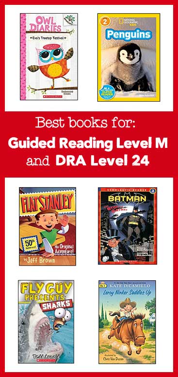 Stink books: Many of the books in this series are written at DRA Level 24 / Guided Reading Level M, including: The Incredible Shrinking Kid, Stink and the Incredible Super-Galactic Jawbreaker, The Ultimate Thumb-Wrestling Smackdown, and Stink and the Midnight Zombie Walk. (There are other books in the series, but they are written at levels N and O.) Click here to see Stink books on Amazon