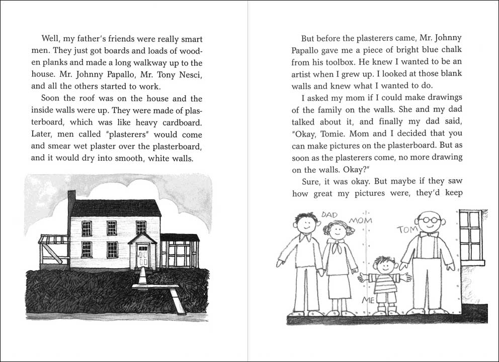 This is definitely not a book heavy on plot. Instead, it is a gentle story that provides a glimpse into little Tomie's childhood and into life in the late 1930s as seen from the eyes of an energetic little boy. This title, and the entire series, tells the cute story of Tomie DePaola's childhood in the 1930s and 1940s.