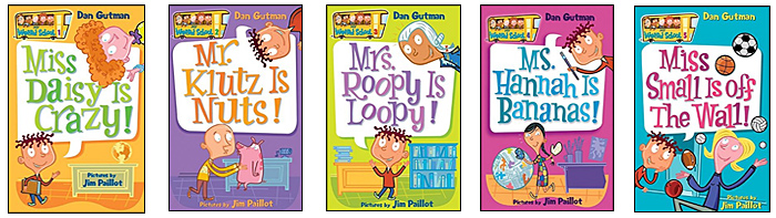My Wierd School series: Every single book in this funny, kid-friendly series was written at DRA Level 34 / Guided Reading Level O. Yea! That's 21 books total -- 21 books that kids can devour once they are hooked...even reluctant readers. :) Shown above are the first five books in the series: Miss Daisy is Crazy, Mr. Klutz is Nuts, Mrs. Roopy is Loopy, Ms Hannah Is Bananas, and Miss Small Is Off the Wall. ALL the books can be found at Amazon (and even come in a 12 book set and a 21 book set). Click here to see My Wierd School books on Amazon