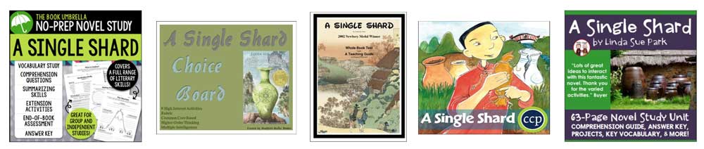 There are quiet a number of novel studies/activity packets available for A Single Shard on the popular teacher website teacherspayteachers.com. We haven't personally used them with our classes (since we teach the younger grades), but they all seem to have a lot of positive reviews. (If you aren't familiar with the website Teachers Pay Teachers, you should check it out!!! It's full of lesson plans, activities, learning games, and other curriculum materials made by teachers. We LOVE the site!!).