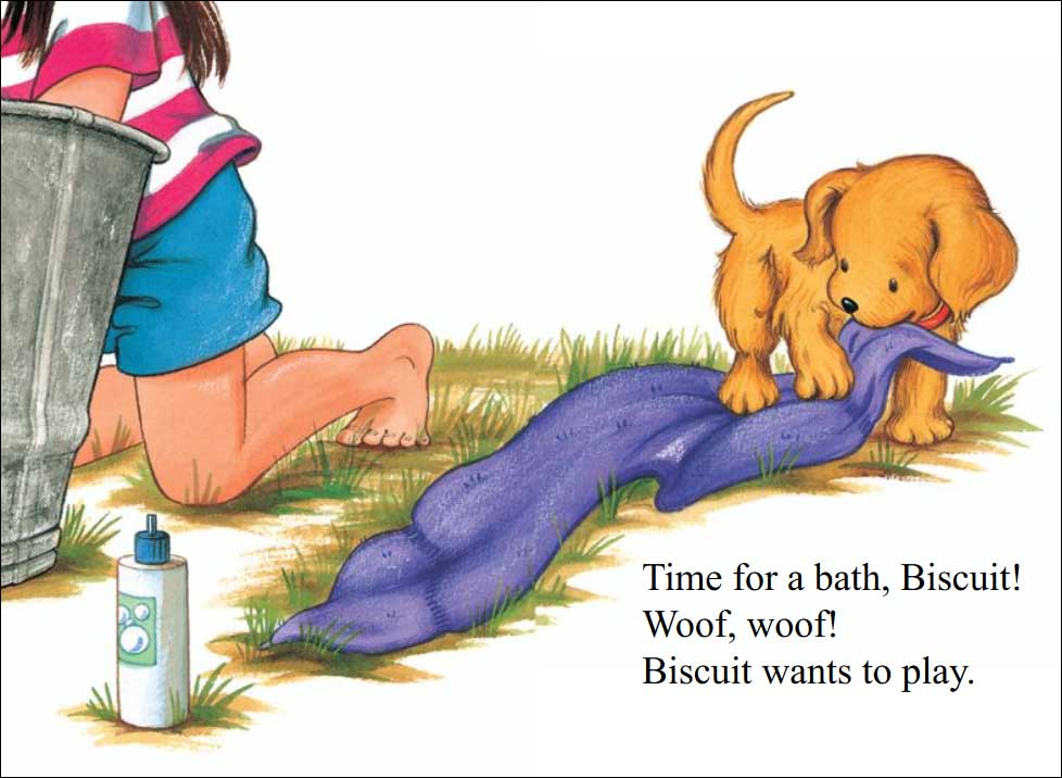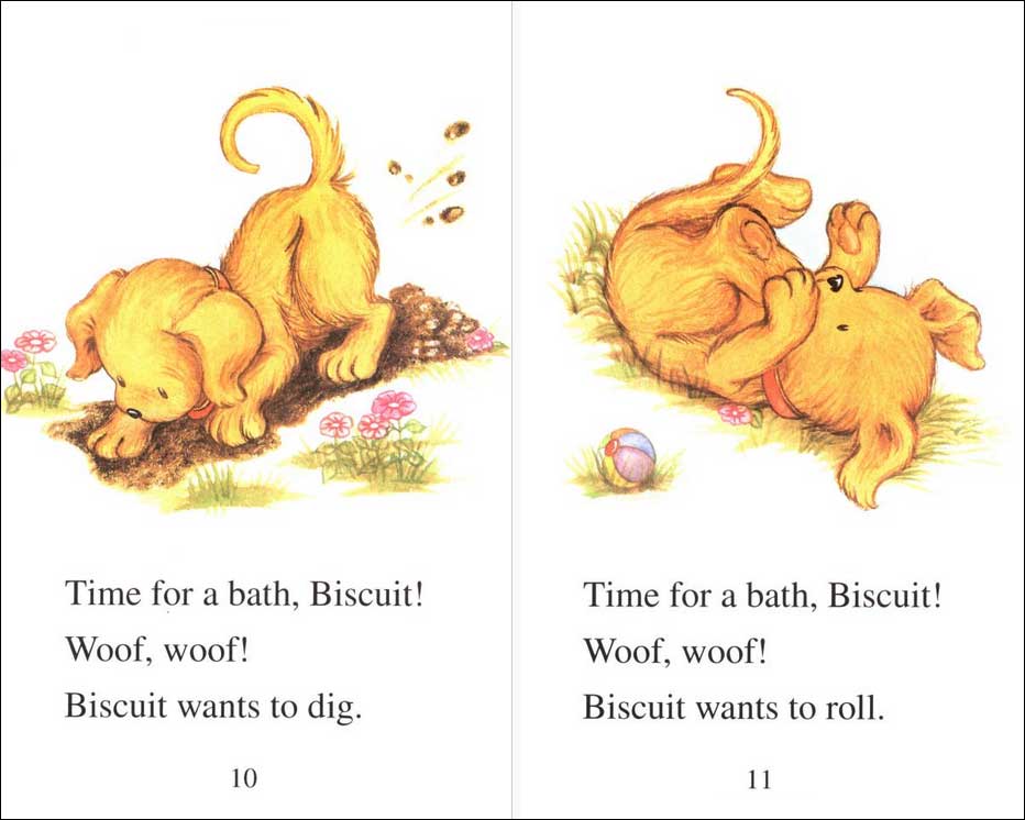 Bathtime for Biscuit summary: Woof, woof! Biscuit needs a bath! Everything is ready for Biscuit's bath; everything except Biscuit! He wants to roll in the mud and play with his friend Puddles! Will Biscuit ever be clean? Join Biscuit in this bathtime fun-filled adventure.
