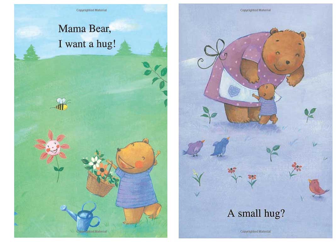 Baby Bear asks his parents for all kinds of hugs--wet hugs, dry hugs, fly up to the sky hugs--in search of the best hug of all.