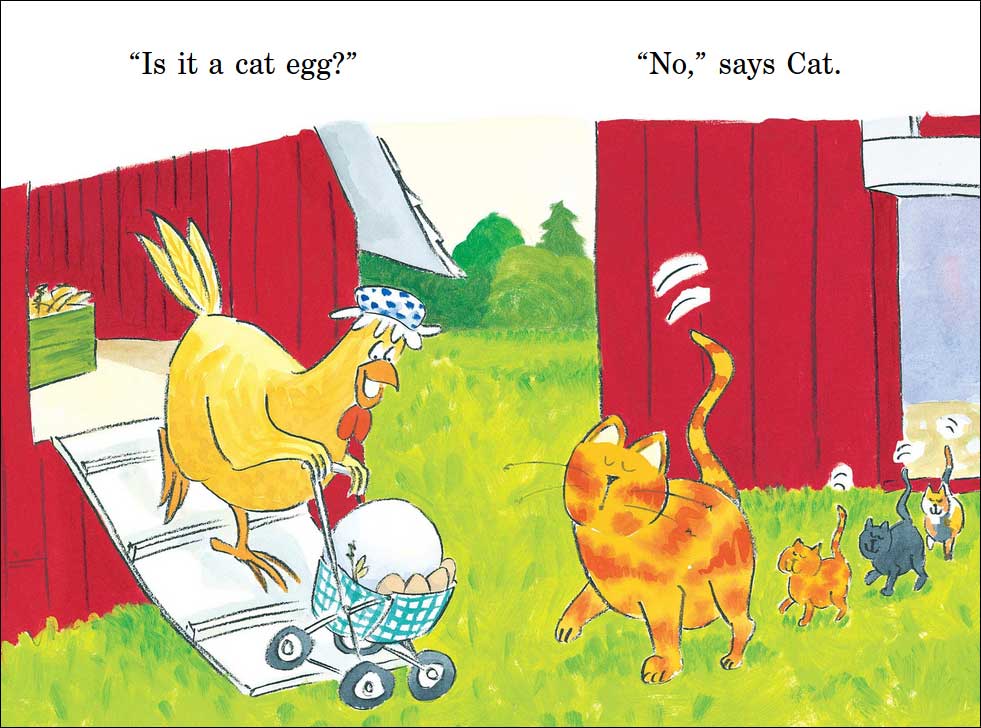 This book plays on an always popular premise for young kids -- when YOU as the audience clearly understand something that the main character doesn't (ie: kittens don't come from eggs, duh!) Kids love the feeling of omniscience!