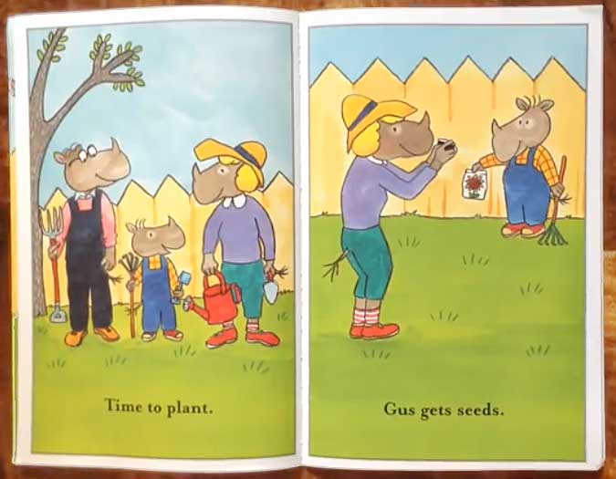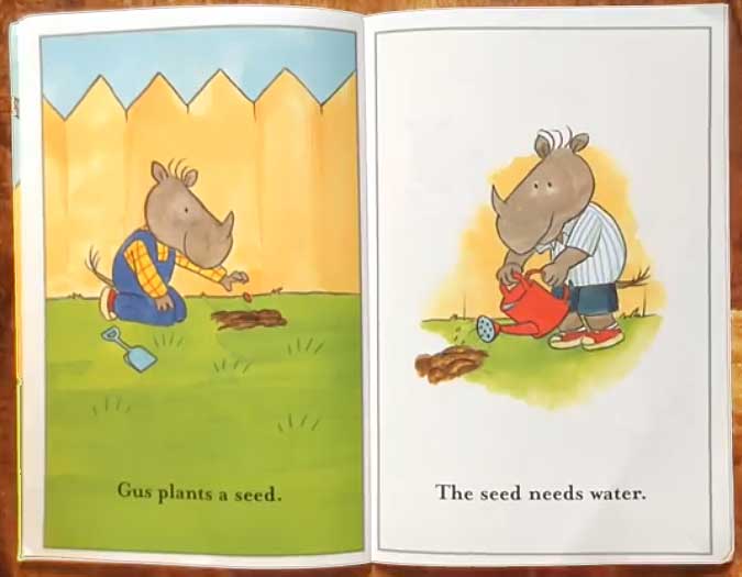Story summary: Patience pays off for Gus in this sweet and simple story. Spring is here, and Gus patiently waits for his plant to grow. He digs and plants and waters and waits...and waits. Will his hard work be rewarded?