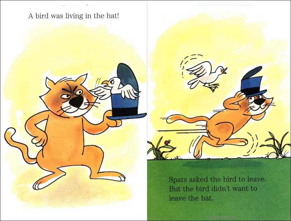 Summary: Spats the cat wears the hat that the bird lives in, but when Spats wants to go left and the bird wants to go right, they must learn to help each other out to both enjoy the hat and each other's friendship.