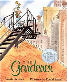 The Gardener is one cute little multi-tasking book. Use it when teaching letter writing, the Great Depression, the power of a positive attitude, and "the vast impact one small individual can make."(PW) David Small's charming, softly focused illustrations help keep the tone light and positive, despite the Depression era setting. And Lydia's positive disposition and lovely rooftop garden not only cheer up her uncle and neighbors; it cheers up the reader as well!