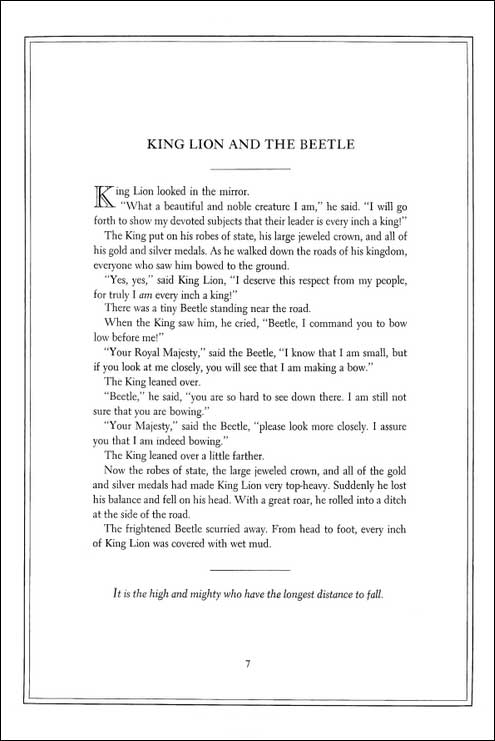 Animal antics poke subtle fun at human foibles through these short, original fables. Lobel, creator of Frog and Toad, builds the fables around unexpected morals that are funny and true, and illustrates them with rich detail, humor, luminescent shadings, and colors that glow. This popular book is a classroom staple!